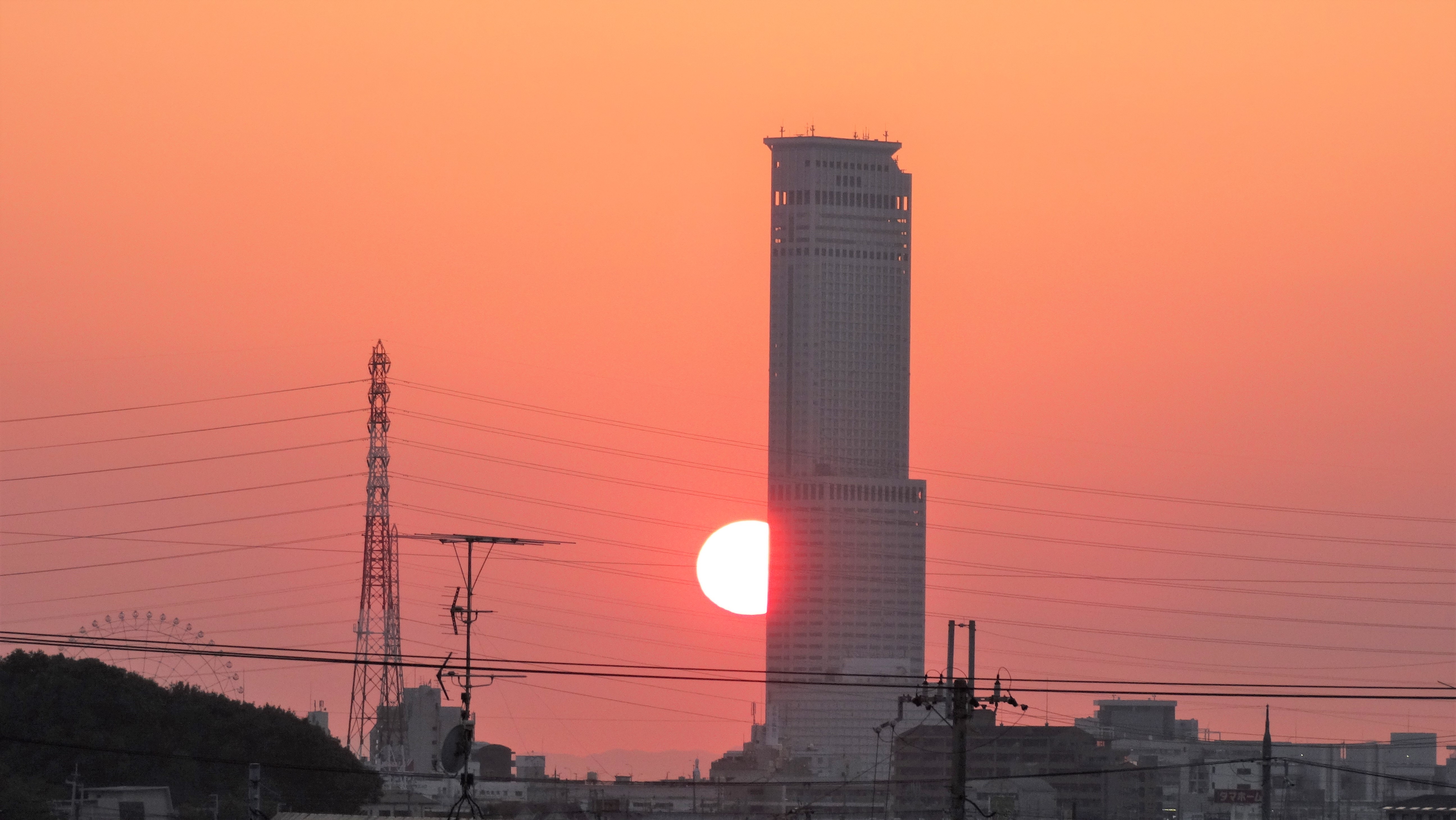 2022.5.3 今日は、りんくうゲートタワーが映る夕陽が奇麗です。